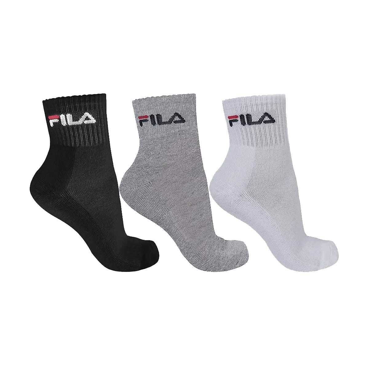 Fila medias tripack unisex caño médio - blanco/negro/gris
